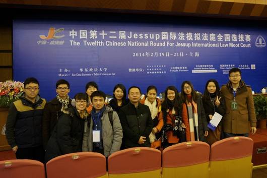 本网讯 2014年2月18日-22日,第12届“杰赛普”国际法模拟法庭(英文)辩论赛中国区选拔赛在上海举行,吸引了包括北京大学、中国人民大学、厦门大学等全国顶尖法学专业院校共40余支代表队参赛。经过激烈角逐,由修文辉、杨嵩棱老师指导的广外代表队取得全国二等奖的好成绩。