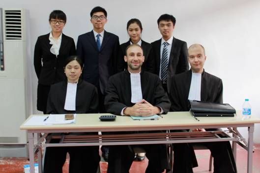 我校代表队在华东政法大学赛场合影留念 本次选拔赛主题涉及跨境污染与国家责任、文物归属、海上紧追权的行使、罪犯引渡等越来越复杂的国际热点问题,数十位来自欧美等国家的著名国际法领域的法官、律师、专家学者应邀为这次盛事评分。在循环赛阶段,我校代表队凭借良好的精神风貌和学业素养先后对阵上海交通大学、国际关系学院、中央民族大学和辽宁大学大学代表队。取得这样的成绩,对于一支主要由三年级本科生组成的年轻队伍而言,实属不易。