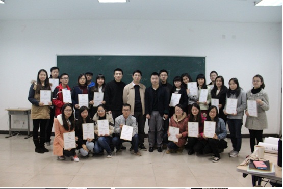 系列课程结束后,现场举行了一个简单而隆重的结业仪式,学生就业指导中心副主任徐昶斌、研究生会苏高阳为学员们颁发结业证书。