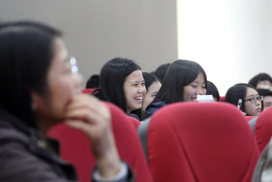 在最后的互动环节,学生提出了一个“经典”的问题:日本人会怎么回答“太太和母亲同时落水先救哪个”的问题?陈端端肯定地答道:“日本人会先救太太。在日本家庭社会教育中,为了夫妻双方信守的承诺,为了孩子的健康发展以及家庭的稳定,丈夫往往会选择先救太太,同时他的母亲也是十分理解的。”