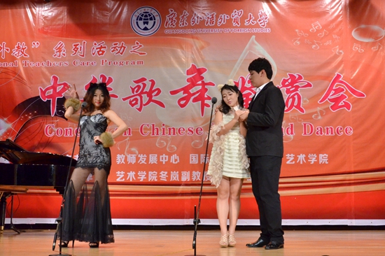 方凡泉分别用中文和英文作开场致辞,拉开了全晚精彩演出的序幕。他谈到外籍教师已经成为我国高校外语教学师资队伍中的重要组成部分。他希望用音乐这一形式,让外籍教师了解中国悠久历史文化,带动了彼此对各自文化的认识,沟通不同国籍间人民彼此的感情,也为身在异国的外籍教师带来了人文关怀。