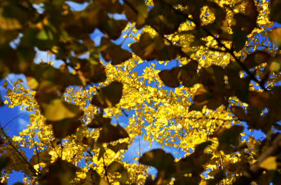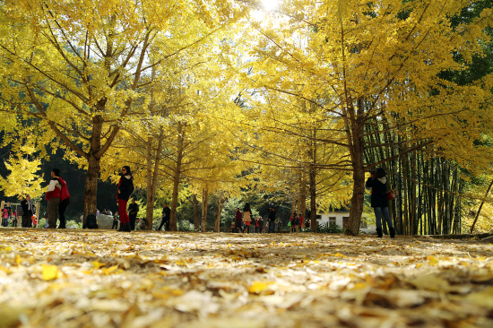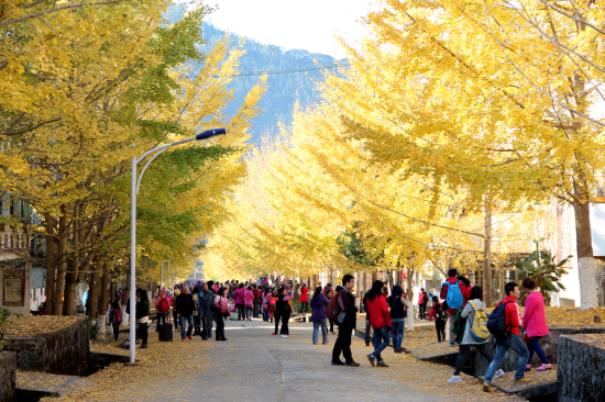 习习秋风,凉意开始扫到南方的大地上来。晴空万里,韶关南雄处,南岭峰旁,一地银杏铺出一条黄金大道。冬日的太阳照在这篇金黄色上,游人的步伐踩在这片金黄色上,黏黏的泥土承在这片金黄色上,黄金时代,一叶知秋,一席银杏落在地上,满山都是秋天的精灵在安静地睡眠,供我们欣赏它种种睡姿。