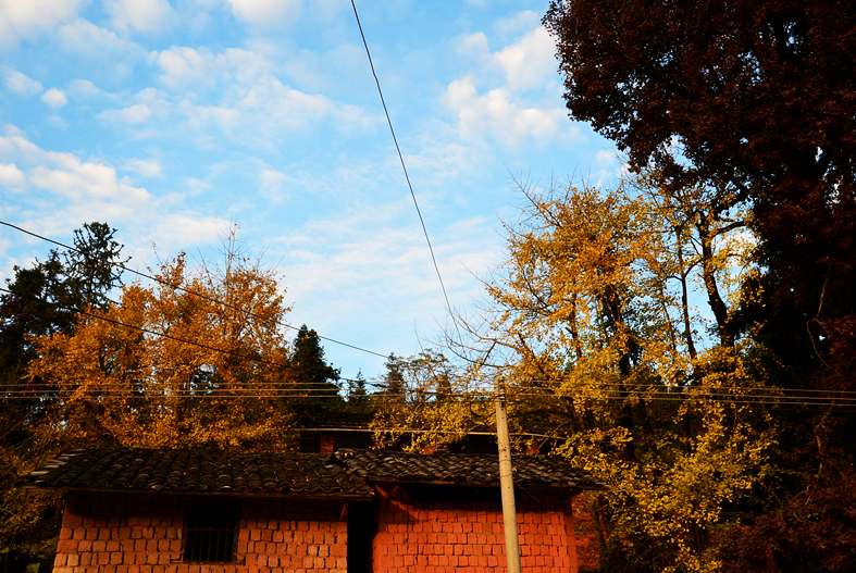 一片两片的金黄和蔚蓝的天像兑开的水彩,