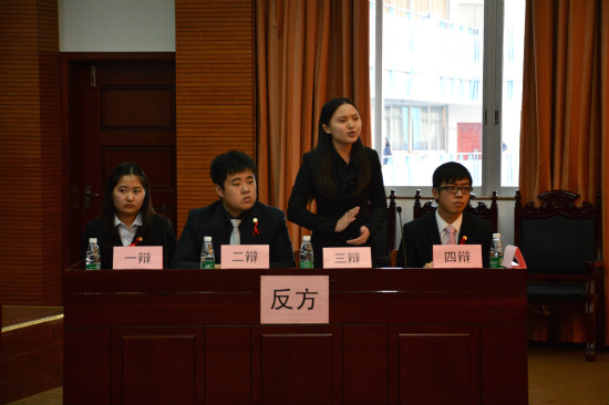 本网讯 “学生感染者应该告诉校方感染状况吗?患者受歧视责任归谁?怎样做有利于学生患者?怎样进行防艾教育?”以第26届世界防艾日(2013年12月1日)为契机,12月5日首届校园“艾”健康广州大学生防艾公益校际辩论赛于我校南校区模拟法庭举行。