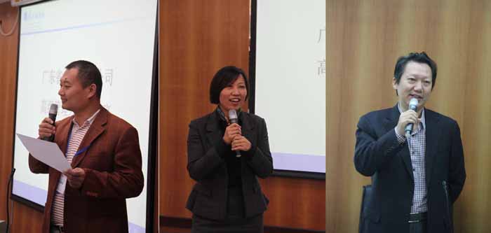 合影 在首批学员为期三天的培训中,来自政府的领导、来自业界的高管和广外的专家教授为学员提供了丰富的学习内容。孙晓琴主讲了金融创新趋势与小微贷业务新模式、丁浩博士主讲了小微金融发展的理论与实践、西语学院党委书记方华主讲了高管人员的综合素质与管理能力提升。广东省金融办的领导解读了小贷行业的法规政策、广州立根小额再贷款公司的于文副总经理和新加坡淡马锡金控公司的郑自强博士分享了他们的成功案例,与学员们进行了经验交流。