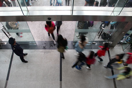 师生撤离图书馆