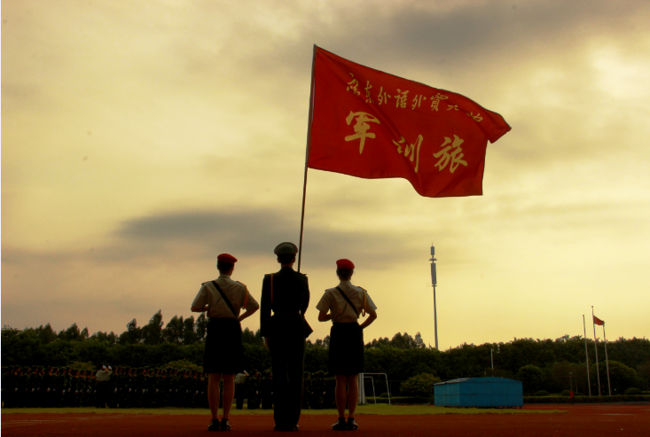 本网讯 昏黄的天幕下,高擎的军旗在风中舒展,全体“小绿人”们在操场上肃立,面向国旗行注目礼,“小绿人”们挺拔的身姿尽显刚毅与力量……这是定格在《军训阅兵》照片中的画面。