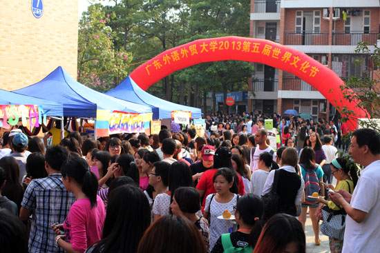 本网讯 舌尖上的广外,云山会堂的“非诚勿扰”,2013年第五届世界文化节精彩纷呈。世界文化节作为我校校园十大精品活动之一,是我校外国留学生展示其风采的舞台,同时也是有关国家展示其风土人情传统文化的窗口。