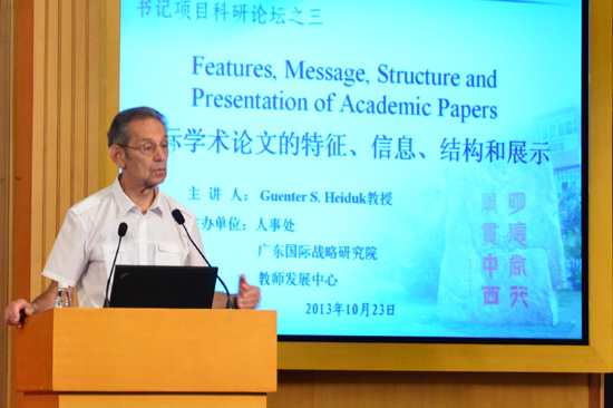 本网讯 10月28日,受国外名师讲座项目资助,波兰华沙经济学院世界经济研究所教授、东亚研究中心主任Günter Heiduk教授来我校进行了为期三天的讲学。讲座主题包括欧盟对华反倾销问题、欧洲福利国家与老龄化人口问题、国际学术论文写作、高等教育国际化对大学管理的影响、广东经济的竞争压力等。
