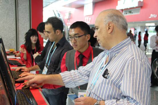 在广交会客商熙攘的大厅内,有这样一群人十分抢眼:身着统一鲜红的制服,佩戴平板手机等先进设备,遍布在广交会的各个区域,主动热情的迎候国内外客商。如同一道亮丽的风景,不仅赢得客商的好评,更被客商亲切地称为“红衫军”。他们就是是为广交会电子商务公司(简称广电商)服务的89名广外学子。