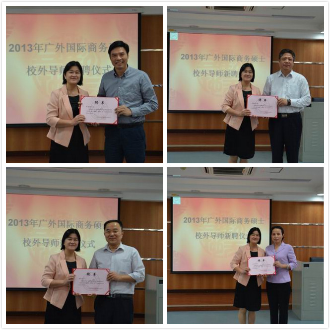 本网讯 10月25日下午,我校国际商务硕士(MIB)校外导师新聘请仪式在云山校区九教举行。经贸学院院长李铁立、书记黄秀娟、MIB教指委代表林吉双教授及全体2013级MIB研究生参加了聘任仪式。聘任仪式由MIB教育中心主任杨励教授主持。