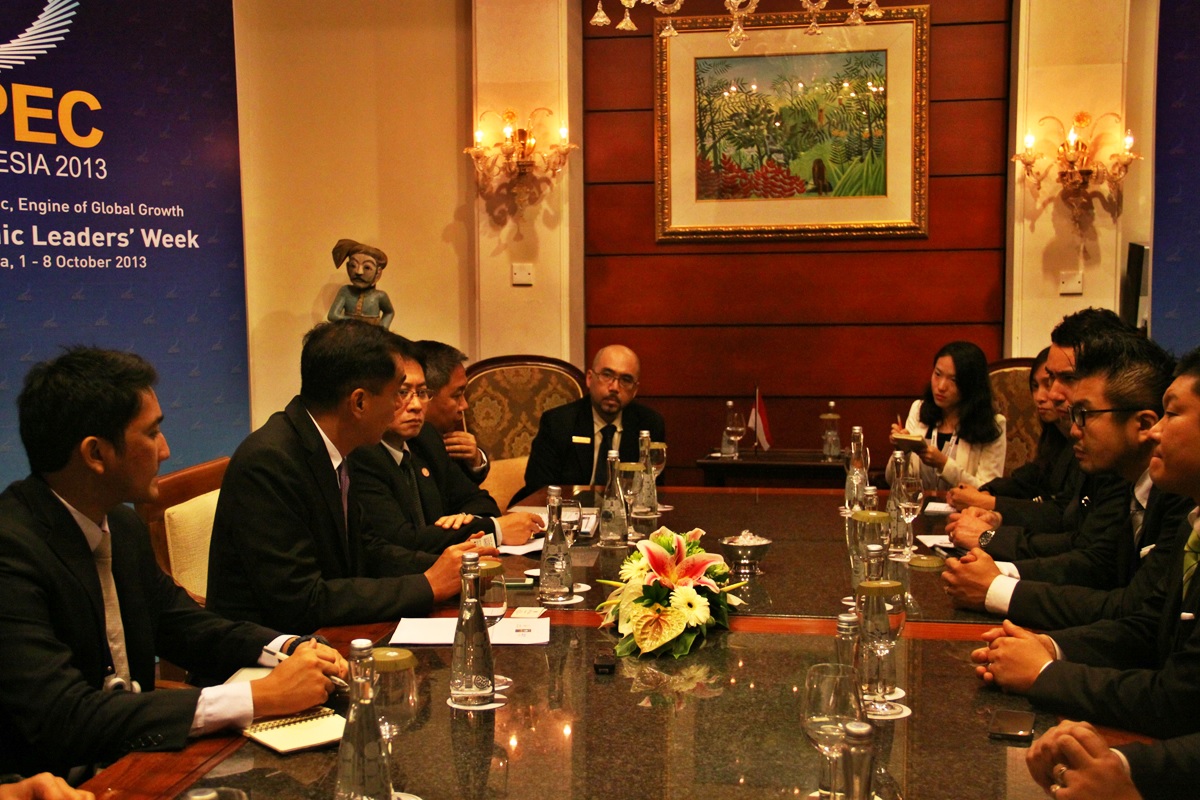 10月1日,2013 APEC青年峰会在印尼日惹凯悦大酒店举行。与会代表有来自十多个APEC成员经济体的高校学生、国际青年商会各国会员,还有印度尼西亚Gadjah Mada大学Riza Arfani教授、中国农科院聂凤英教授、澳大利亚国立大学克劳福德经济与政府学院的Andrew Elek教授等各领域的专家学者。