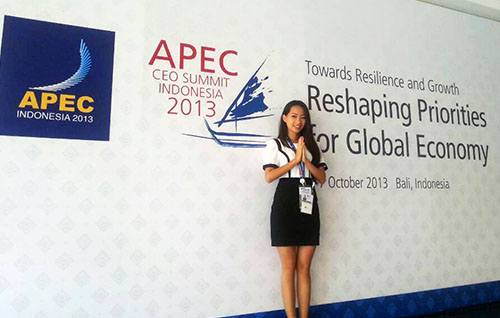 在为期3天的2013亚太经合组织非正式领导人峰会过程中,潘熳琳在现场倾听了各国首脑与全球知名企业家的精彩演讲,她兴奋地分享到:“几乎每一场演讲,各国首脑或企业代表都必定讨论中国。峰会中有许多杰出华人企业家和金融界领导的讲话,如HTC董事长王雪红、世界银行亚太主管吕凯文和富士康董事长郭台铭等。”