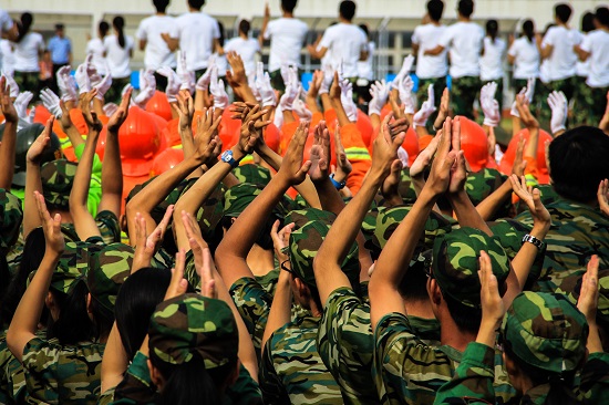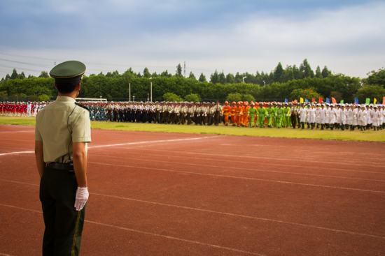 今年九月,广州最高气温达到35摄氏度。今年九月,广州遇到了超强台风“天兔”。今年九月,广外的2013级新生正在军训。我们不禁地把目光聚焦在他们的身上,在焦阳下站军姿,在雨中踏正步。我们不禁地为他们担心,他们是否能挺过这一场仗。而在今天的军训汇演中,他们,用行动告诉我们——他们是广外人,他们能行。