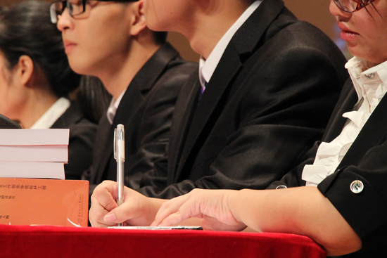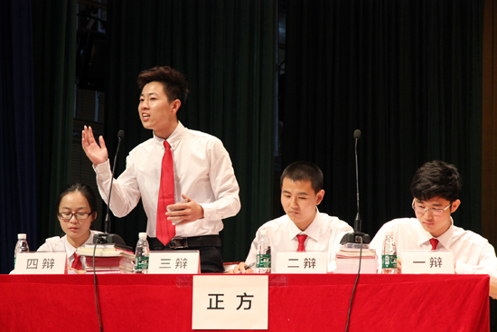 在硝烟四起的攻辩和自由辩论环节,双方辩手将辩题上升到了“个人和意识”、“存在与意识”的哲学角度,将气氛推向白热化。在四辩的总结陈词中,反方四辩逻辑严谨,分别对正方所有辩手的提出的漏洞进行一一辩驳,强调问题不是灾难,有力地攻击了正方的论点。而正方四辩也并不示弱,她用一连串有力的排比句,告诉大家要消除不诚信现象,首先就是要从自身做起,有力回归了本方观点。最后,评委赞扬了双方交锋时擦出的哲学火花,主席宣布第一场辩论由略占优势的反方获得了胜利。