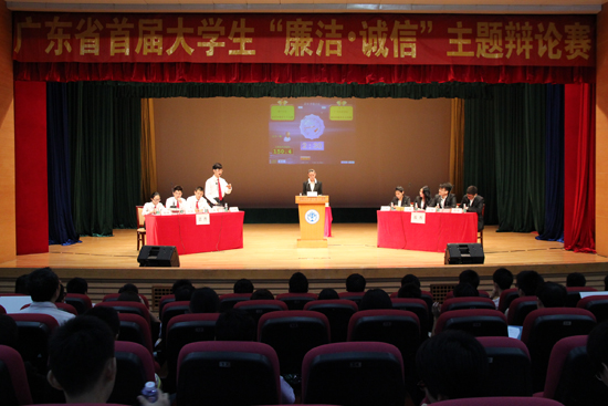 本网讯 9月26日下午,由我校承办的广东省首届大学生“廉洁•诚信”主题辩论赛初赛A3赛区的比赛在北校区六教报告厅举行。