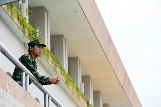 若问:新学期里,校园里最吸引人眼球的是什么?答案当属浩浩荡荡的“绿色部队”——那是2013级新生的军训队伍。由于一身军绿色的迷彩着装,师兄师姐亲切地称呼他们为“小绿人”。初来乍到,“小绿人”们不仅是校园里最独特的风景线,更成为了训练场上英姿飒爽的好少年。今天,仅随记者镜头,一睹“小绿人”们的军训风采!