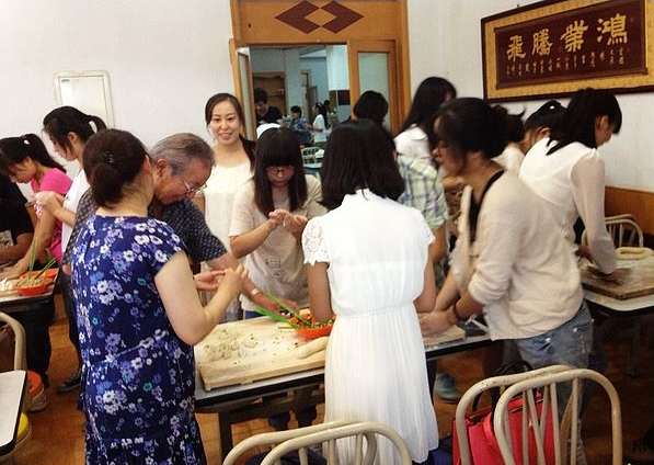 访问团成员与学生们一起包水饺