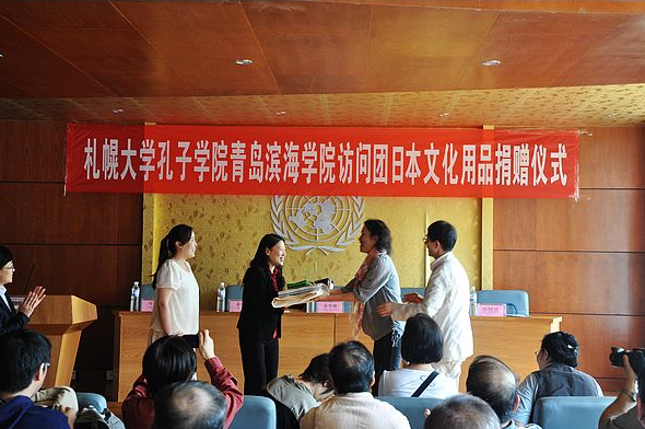 9月13日旅行团一行访问了青岛滨海学院。学校为日方师生精心安排了主题鲜明、内容丰富的学习、体验、参观活动,日本友人欣赏了中国的茶艺、古筝表演,品尝了中国的特色饮食,参观了青岛滨海学院地球村、图书馆、世界动物标本艺术馆等。访问团一行也向学校地球村的日本馆捐赠了日本和服、日本人偶、书籍、玩具等物品。学校为每位访问团员安排了4-5名日语专业学生志愿者进行陪同,热情洋溢的欢迎仪式、真诚好学的莘莘学子、美丽的校园景色、多彩的校园文化都给访问团员们留下了深刻的印象。而日本友人对中国文化表现出的浓厚兴趣、对学生们的学习生活给予的热切关注也让学生们受到了极大的鼓励,坚定了他们发奋学习日语、深入了解日本文化、为中日两国民间友好交流发挥桥梁作用的决心和信心。临别之际,访问团团员与学生们依依惜别,并就纷纷表示此次交流使大家认识到了真正的中国年轻人,对中国的未来充满期待。