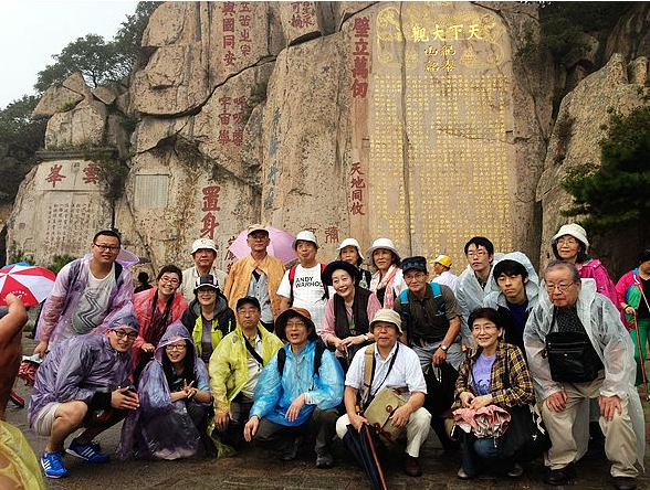 访问团雨中登顶泰山