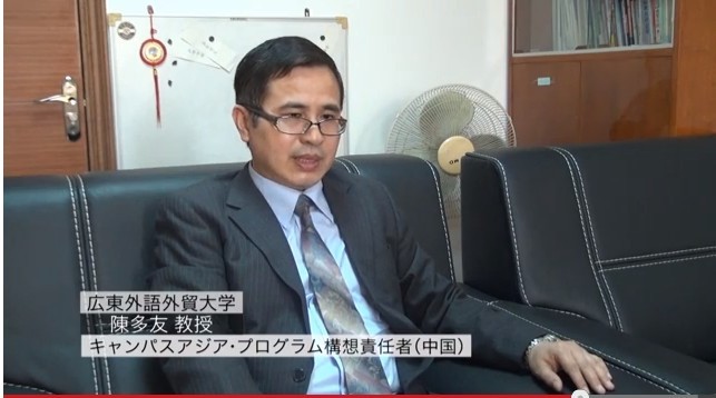 作为项目主要运作人之一的我校东语学院院长陈多友的一段访谈也在节目中播出。“亚洲校园”计划目前正在实施创新性跨国移动式课程,陈多友对此有自己深刻的见解:“当前,作为亚洲的三大国家,中日韩三国仍处在复杂多变的国际形势之下。三国之间虽然历史渊源颇深,但是近代以来由于领土、经济等各种问题,正处于互相纷争不断的敏感时期之中。“亚洲校园”计划作为三国政府间首次推进的高层次教育国际化项目,致力于培养出更能有效解决三国共同问题的国际综合创新型人才,这与当前的三国间复杂多变的国际形势是相呼应而存在的。”而提及“亚洲校园”计划项目的发展前景,陈多友也是充满期待:“我们必将一鼓作气,全力以赴。我本人也对此有很高的期待,希望“亚洲校园”计划越办越好。”