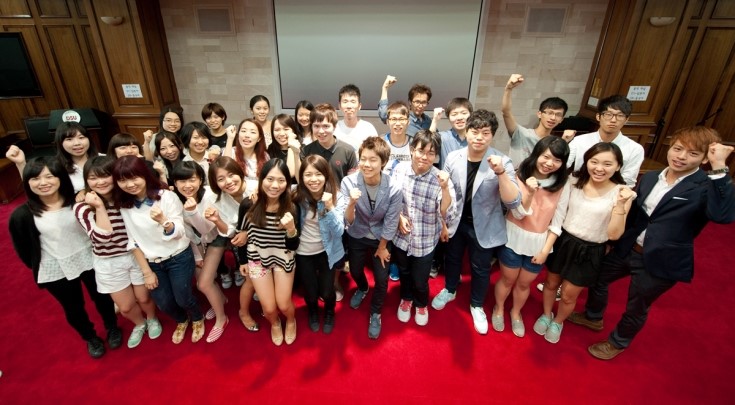 开讲式当天,韩国东西大学校长、副校长以及日本立命馆大学的相关老师都出席并发表了开讲式致辞。韩国学生的父母也都纷纷到场支持,场面可谓隆重热烈。开讲式最后,三国学生齐齐做出振臂高呼的手势,表示了自己的期待和决心。
