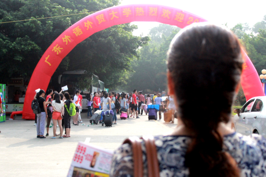 翘首企盼中,广东外语外贸大学终于迎来了2013级新生。带着父母亲的殷切期望,带着前辈老师们的淳淳教诲,怀着喜悦新奇的心情,新生们步入广外校园,迎接属于他们的微笑与祝福,走进大学生活,开启人生新篇章。