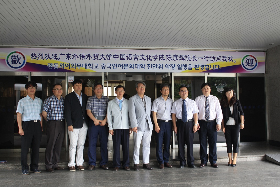 7月24日,访问团第二站到达位于韩国南部海港城市的釜山外国语大学,与该校国际交流处处长边琪灿、国际交流顾问郑润哲等人就两校之间中文研究生及本科生交换、设立双学位、中国学研究中心等问题进行了深入交流,并已确认以学生交换为起点开展教育与科研合作。