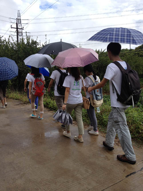 变幻莫测的天气没有阻挡调研组队员前进的脚步,队员们早已整装待发,计划前往坪上村对学生和家长进行关于高埔镇初等教育状况的问卷调查。队员们穿过村庄,翻过山丘,急行近两小时,没有厌倦,没有抱怨。“你好,我们是广外的三下乡服务队,请问有没有时间帮我们填一份调查问卷?”成为调研成员们的口头禅。