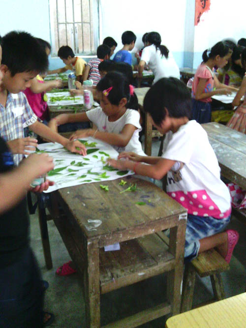 本网讯 7月17日,我校环协绿色行动服务队前往普宁市高浦镇龙堀小学开展三下乡活动。 如白驹过隙,三下乡活动进程已过半。几天的倾盆大雨过后,望着地上铺满的落叶,负责四年级环教课的队员邢佳曼设计了一节别出心裁的手工课。她搜集形态各异的落叶,在课堂上让学生们发挥想象力,将其拼贴成图画。分组后开始创作时,原本兴奋的孩子们安静下来,全神贯注,认真思考布局构图,小心地粘贴树叶。邢佳曼表示,看着从他们手中冲出的雄鹰,跃出的胖金鱼,蹦跳出的小兔子,一旁的自己自叹不如。
