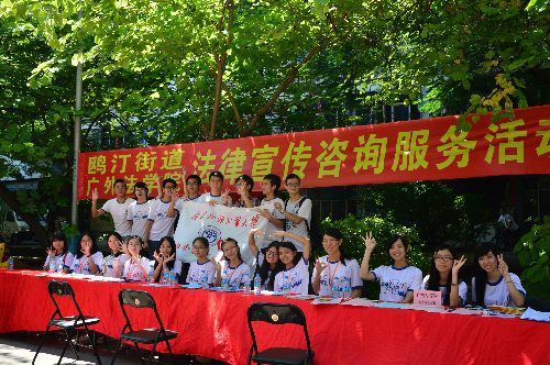 22号,按照计划,今天早上全体“萤火虫”在鸥汀街道与鸥汀司法所计生办联手进行法律宣传咨询服务活动。前来咨询的群众络绎不绝,咨询方向涵盖债务、民生、贪污问题等多方面,“萤火虫”倾尽所学知识,与鸥汀街道工作人员一同为群众提供最满意的答案。“萤火虫”工作人员分为两组,一批负责法律咨询另一批负责派发法律传单,两组分工明确,互相配合,力求达到最佳普法效果。鸥汀街道印发了约500份的宣传资料,涉及铁路、土地、计生、交通等,方向涵盖全面,影响力度可观。本次普法活动围绕“加强农村法制观念,构建社会主义和谐新农村”的主题共历时两个小时。在当地有关部门的协助下,户外设摊宣传法律知识并为当群众提供法律咨询,有利于及时地减少和解决群众纠纷。对于我们来说,能够依靠专业法律知识,坚持理论联系实际,不骄不躁,耐心讲解,服务农村,服务农民,在默默无闻中更加充分地发挥着大学生在社会实践中的先锋模范作用。