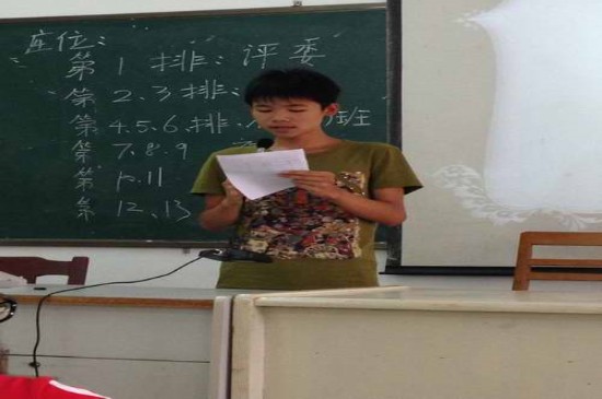 本次参赛选手中还有两位男生,他们分别是来自初二(1)班的伍家豪和来自初二(2)班的伍伟权,伍家豪先登台朗诵,初次登台的他有些紧张,在读之前做了一个抚胸舒气的动作来缓解紧张感,在其后登台的伍伟权,也做了很好的朗读展示,但是相对于前一位男生选手音量小了些,略显不足。初二组第一环节结束后,魏健炜老师为初二各个选手作了点评。