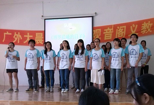 闭幕式以我们惠州博罗晨曦队的全体队员演唱队歌《惠州晨曦的日子》为终结。队员们的歌声动听,歌词感人。“开始的开始,我们都是孩子,最后的最后,渴望变成天使……我们即将分别,独自忙在广州惠州不同地点……”当我们合唱时,孩子们为我们摆手,鼓掌,拍照,以留下美好的回忆。最终,菠萝们和孩子们都忍不住地留下了炽热的泪水,心情激动哀伤。最后,我们再次演唱队歌并与学生们合照,为这次下乡义教活动画下完满的句号。