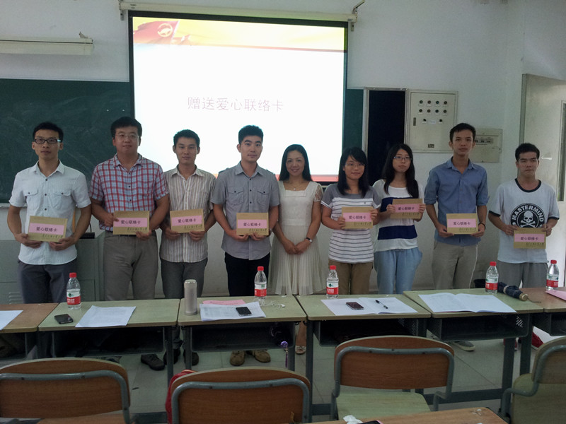 谢秀兰向临时团组织负责人赠送联络卡