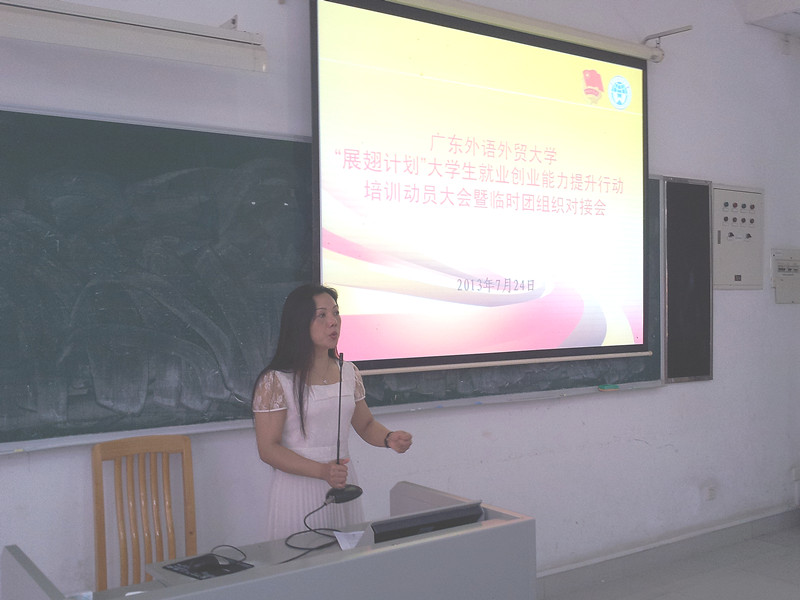 谢秀兰在讲话中指出,“展翅计划”是一项实现政府提升就业、企业吸引招募人才、大学生锻炼能力“三赢”的好项目。学校团委将认真做好800名实习见习学生的相关服务工作,同时她也谈到,第一次运作庞大的项目,可能会有不少细节问题,请同学们理解和包容。她希望临时团组织能多与同学及用人单位了解情况,发挥主动性为同学们服务,也希望实习见习同学能够注意自己的言行举止,时刻牢记自己是一名广外学子,不忘为母校增光添彩。