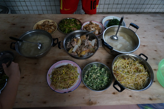 后勤组的工作重复枯燥。每天六点多就要爬下床准备早餐,刚安顿好二十多人的早餐,又开始准备午餐,下午休息过后又到了晚餐的准备时间,到了晚上还要负责清点队伍人数,确保财物安全。尽管生活在市场、厨房单调的两点一线中,四位后勤组成员还是挖掘出了许多乐趣。
