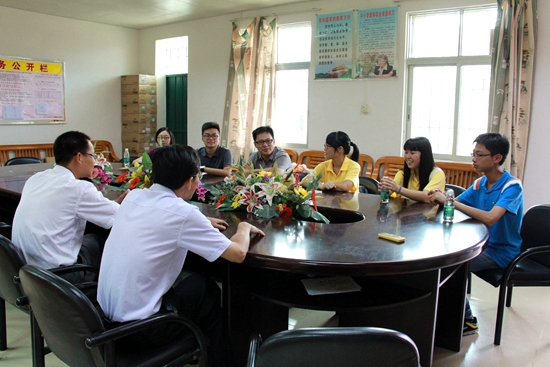 上午,欧少彬到达斗门镇初级中学,与赵秉衡与唐德芳就我校开展的暑期社会实践活动进行交流,并达成通力合作的共识。欧少彬向赵秉衡与唐德芳介绍,我校开展的暑期社会实践活动对中小学生的生心发展具有重要意义,赵秉衡对此表示同意,并表示活动有利于乡村学校学生走向大城市,向我校输送人才。