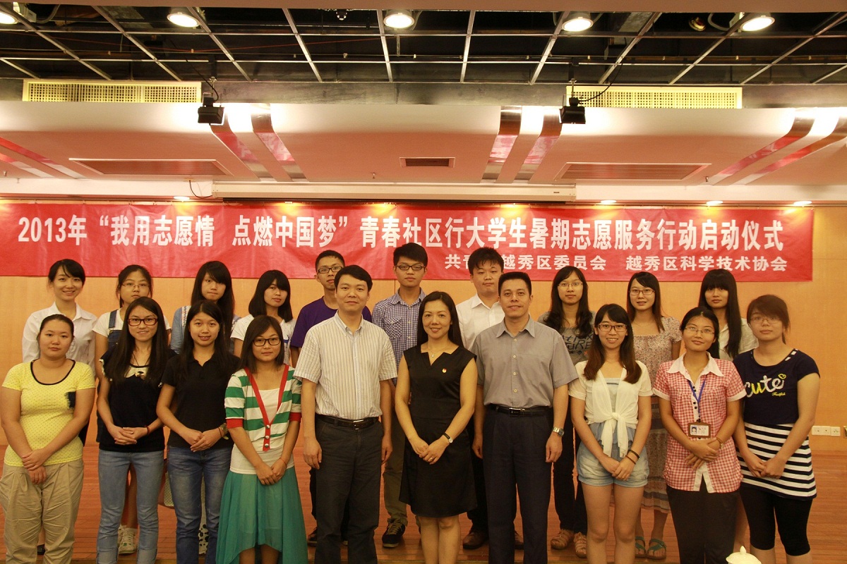本网讯 7月15日下午,按照学校党委关于开展党的群众路线教育实践活动的有关部署,我校团委领导班子以参加广州越秀区团委和越秀区科协共同举办的越秀区2013年“我用志愿情,点燃中国梦”青春社区行大学生暑期志愿服务行动启动仪式为契机,进行了关于“加强作风建设,树立正确权力观”的群众路线主题学习实践活动。