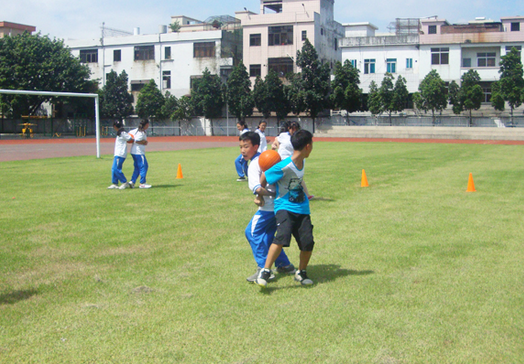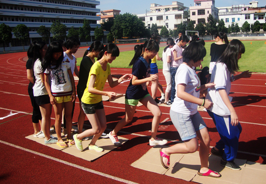本网讯 7月19日上午,寮步晴空万里,这是“GTL寮中夏令营”开营以来难得的好天气。在这个温暖宜人的日子,英文学院“GTL三下乡服务队”在寮步中学大操场举办了趣味运动会,80多名学生参与了“过河拆桥”、“两人三足接力”和“心心相印”三个游戏,现场气氛十分活跃。这一活动既让同学们舒缓了心情,又增进了师生间的情谊。