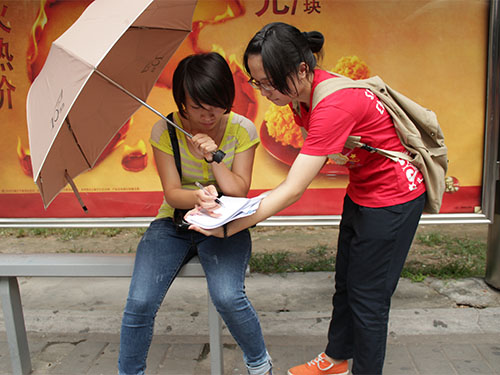 路人认真填写问卷