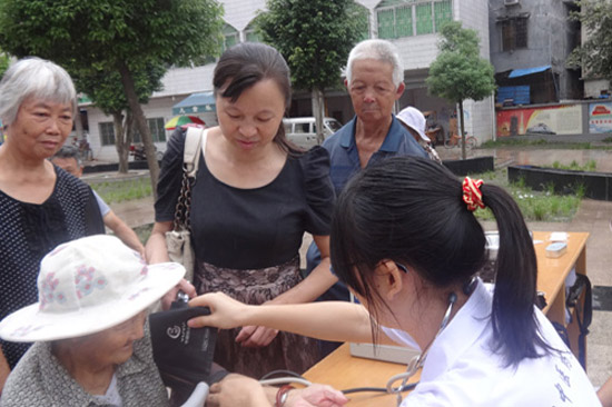 本网讯 为弘扬国粹中医文化,增强韶关新丰县丰城街道南区社区居民对中医的认识,7月20日上午,我校管院志协联合广中医组建的“夏纪拾忆”三下乡服务队在南门塘社区举办了一场大规模中医义诊活动,本次活动内容包括:推拿、量血压、拔火罐、耳穴、艾灸以及健康咨询等。活动有效宣传了中医保健知识,彰显了我校与广中医学子学以致用、回报社会的风采,得到当地居民的赞誉。