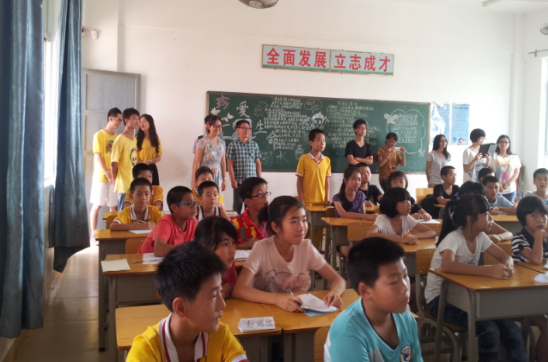 紧接着,国佳一行来到了课室看望正在教学的义教组组员,亲切地询问义教组组长朱鸣穗教学的具体情况。针对朱鸣穗的汇报,国佳建议要积极优化教学方式,进一步提高课堂趣味性,发挥广外大特色教学的优势,采取寓教于乐的创新教学方式,激发孩子们强烈的求知欲。他还鼓励义教组组员要不断地积极探索新的高效教学方式,培养锐意进取、积极创新的精神。