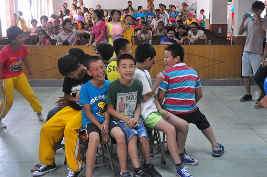 “Sun夏年华”的队员们很快与小朋友打成一片