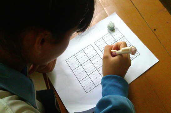 课后同学们在教室饶有兴致地计算数独题