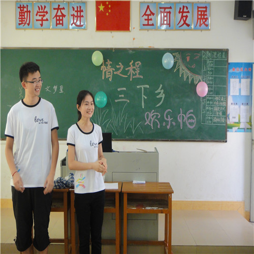 本网讯 7月17日,在经贸学院“情之程”党员队伍来到韶关曲江的第二天,队员们迎来了活泼可爱的大塘中学的同学,三下乡之旅正式启航。