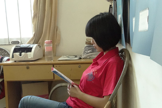 在计划生育办公室,因为队员对计生工作了解不多,计生办工作人员拿来多本小册子供队员学习。队员们通过认真阅读《广东省人口与计划生育条例》、《优生优育宣传手册》、《地中海贫血健康教育读本》等资料,对我省计划生育政策等有了初步的了解。之后,计生办诊室的医生向她们示范了测量血压、身高、体重等基本数据的方法。