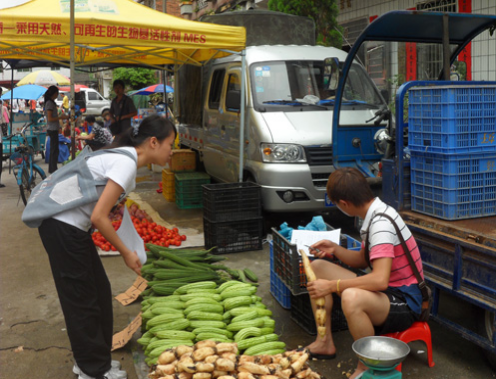 “夏日暖阳”服务队文宣组之前已进行过踩点,今天按照预定计划到达梅坑村市场进行知识宣传,内容包括科普、生活、安全和法律四个部分。队员主要通过派发传单对村民进行知识宣传,并就传单上的内容进行一些简单的讲解。队员们穿梭在赶集的人群中,利用一切机会进行宣传。一个卖锄具的阿伯一拿到传单,便戴上老花镜。在喧嚣的人群中,阿伯一边耐心地听队员的讲解,一边仔细地看起了传单。据调查,在宣传过程中,村民普遍认为宣传内容丰富实用,但也存在设计单调等不足之处,并就此提出了一些建议。