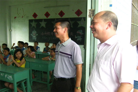 汕尾市城区教育局局长林泽树(右)莅临教学基地