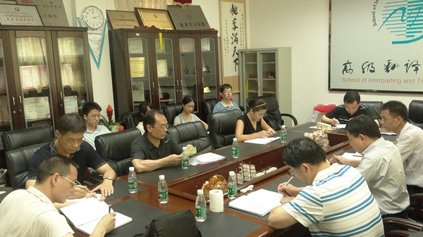 7月12日下午,翻译学院党委在四教会议室召开了党的群众路线教育实践活动动员会。翻译学院全体教工党员和学生党员代表参加了本次会议。会议由党委书记高云坚主持,并就学院开展党的群众路线教育实践活动提出了四点意见。院长平洪等畅谈了学习体会。