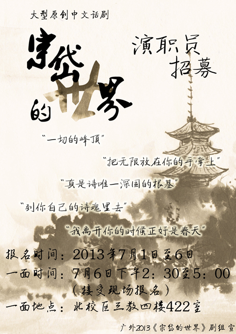 而话剧主创团队代表、执行导演王智同学则表达了要导好、演好《宗岱的世界》的决心,为梁宗岱先生诞辰110周年的纪念奉上一份属于广外人的贺礼。